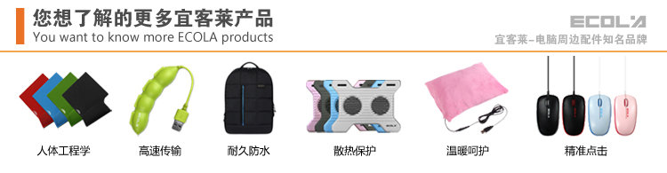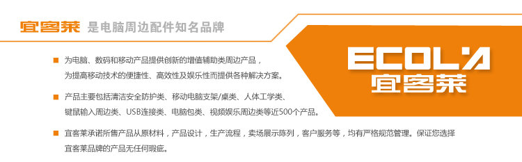宜客莱ECOLA,是电脑周边产品行业知名品牌,为电脑、数码和移动产品提供创新的增值辅助类周边产品。